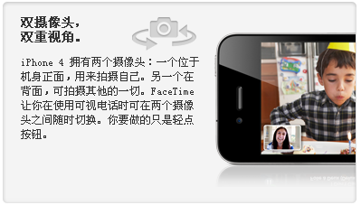 当其他人还在尝试追赶 iPhone,我们已在创造令人惊叹的全新功能,以使 iPhone 比以往更强大、更易用、更无可替代。成果就是你现在见到的 iPhone 4。iPhone 诞生以来最激动人心的事情,就是 iPhone 4 的诞生。 |
